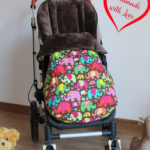 Der Fußsack ist mit einem farblich passenden Schrägband eingefasst.